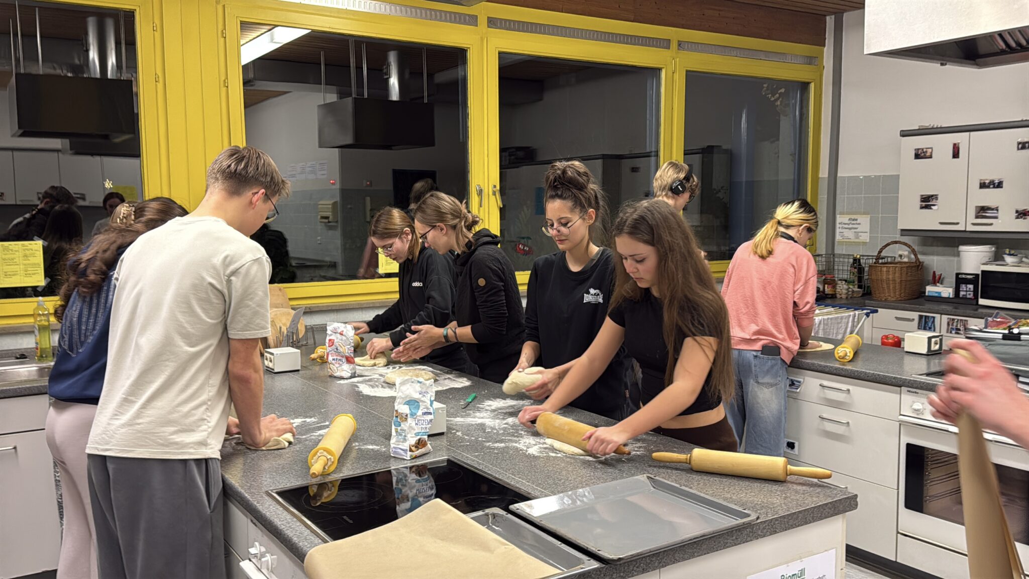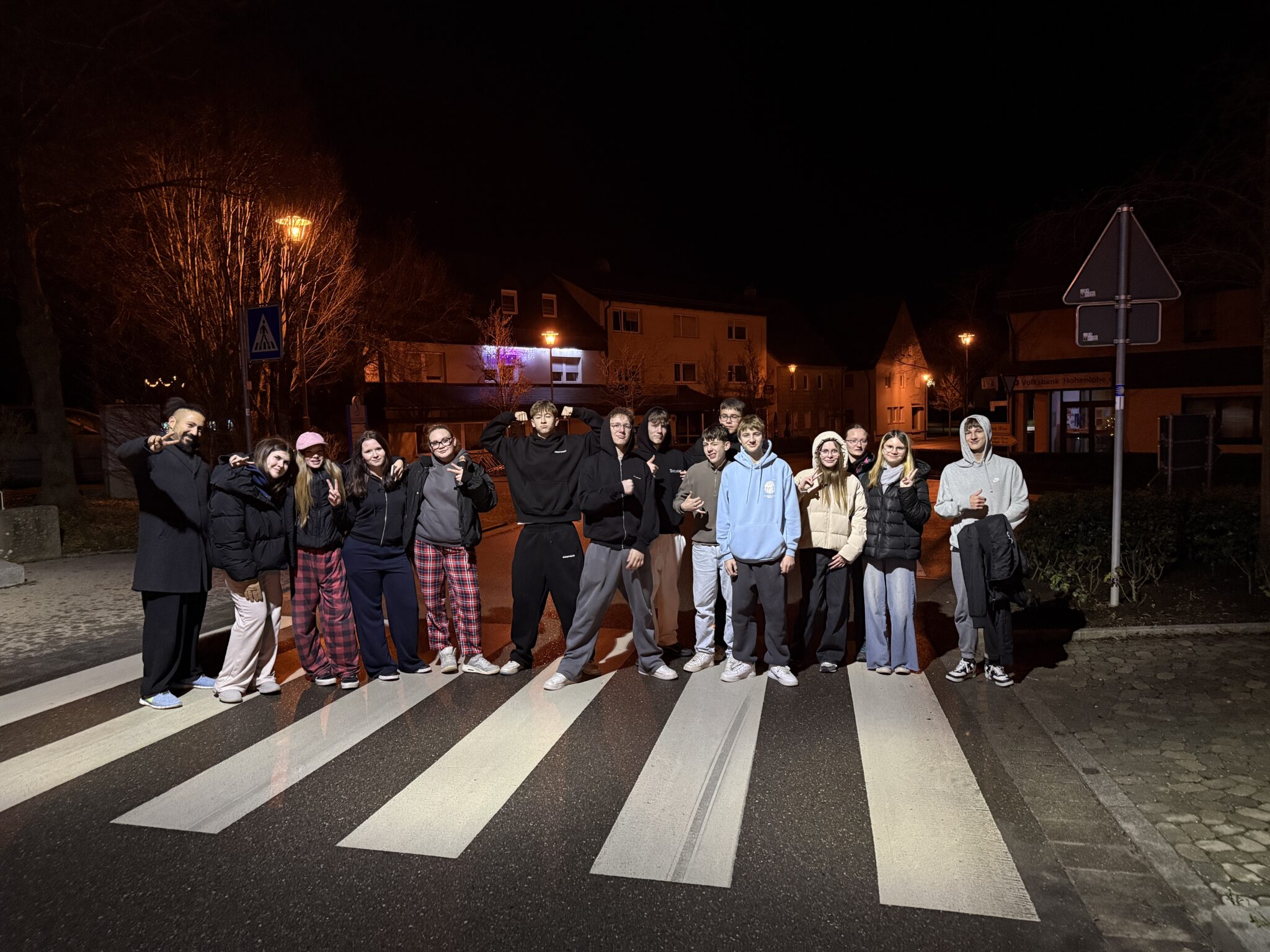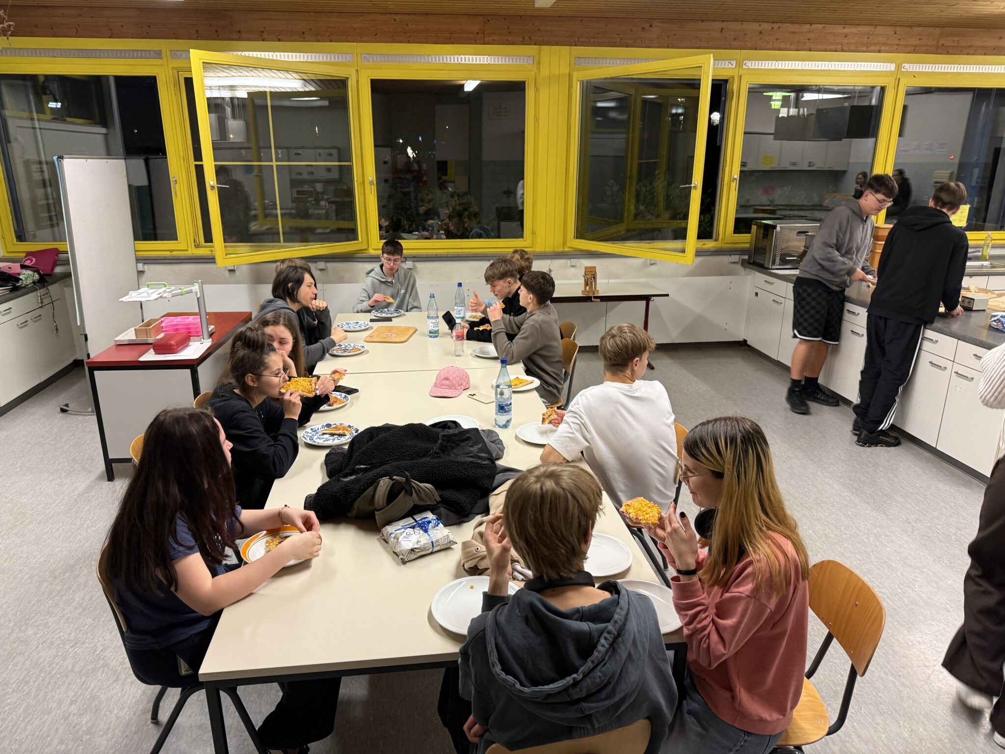 Kurz vor den Weihnachtsferien erlebte die Klasse 9R der Schule Schrozberg ein ganz besonderes Highlight: Von Mittwoch, den 18.12., auf Donnerstag, den 19.12., fand eine gemeinsame Schulhausübernachtung statt. Begleitet wurde die Klasse von ihrem Klassenlehrer Herrn Yigit, der dabei tatkräftige Unterstützung von Frau Sabelmann und Frau Knopf erhielt. Neben gemeinsamen Spielen (Verstecken, Sing Star, Mario Kart, Schach, …), Tänzen, Gesprächen und dem besonderen Gefühl, über Nacht in der Schule zu bleiben, stand vor allem auch das gemeinsame Kochen und Backen auf dem Programm. Mit viel Engagement und guter Laune backten die Schülerinnen und Schüler zusammen mit Frau Knopf fleißig Pizza und versorgten damit die gesamte Gruppe. Der Duft frisch gebackener Pizza sorgte für eine gemütliche und fast schon weihnachtliche Stimmung. Die Schulhausübernachtung war somit ein schöner Abschluss vor den Weihnachtsferien und ein weiterer Beitrag zur Förderung der Klassengemeinschaft.